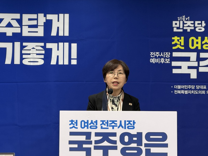 국주영은 예비후보는 34일 전주시청 브리핑룸에서 기자회견을 열고 “전주에서 여성 시장의 탄생은 그 자체로 전주의 담대한 변화”라며 “전주를 전주답게, 시민을 살기 좋게 만드는 첫 번째 여성시장이 되겠다”고 말했다.