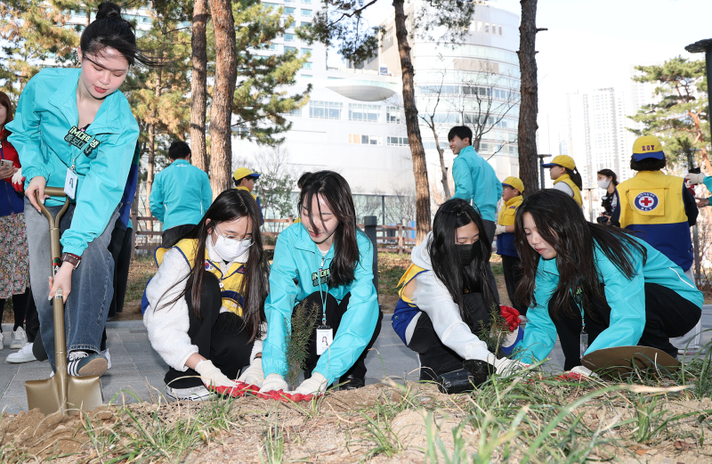이날 현장에서는 신용필 iM뱅크 가치경영그룹장과 배인호 대한적십자사 대구지사 회장 등이 참석해 생태적 가치가 높은 국가보호종 ‘주목’을 비롯해 이팝나무, 영춘화, 남천 등 총 4000주의 묘목과 꽃을 공원 곳곳에 심었다.