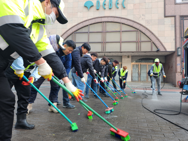 중구는 24일 동성로28 아트스퀘어에서 시계탑 조형물까지 ‘2026년 새봄맞이 대청소’를 실시했다.