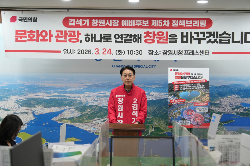 김 후보는 24일 창원시청 프레스센터에서 제5차 정책브리핑을 열고 “창원을 머무르고 다시 찾는 도시로 전환하겠다”며 관광 구조 혁신을 공식 선언했다.