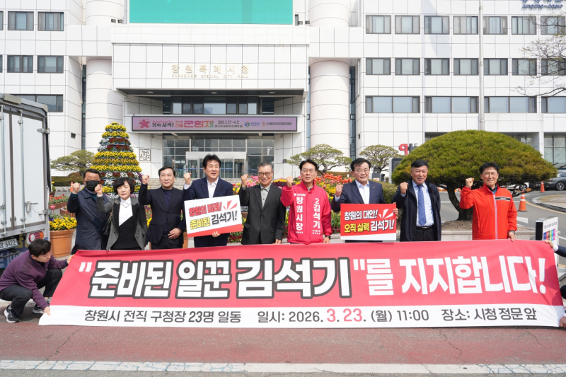 이날 창원시청에서 창원시 전직 구청장 23명은 기자회견을 열고 김 후보에 대한 지지를 공식 선언했다. 이들은 “장기간 시장 공백으로 시정이 방향을 잃고 주요 현안이 정체된 상황”이라며 “창원을 정상화하고 재도약을 이끌 적임자는 김석기 후보”라고 강조했다.
