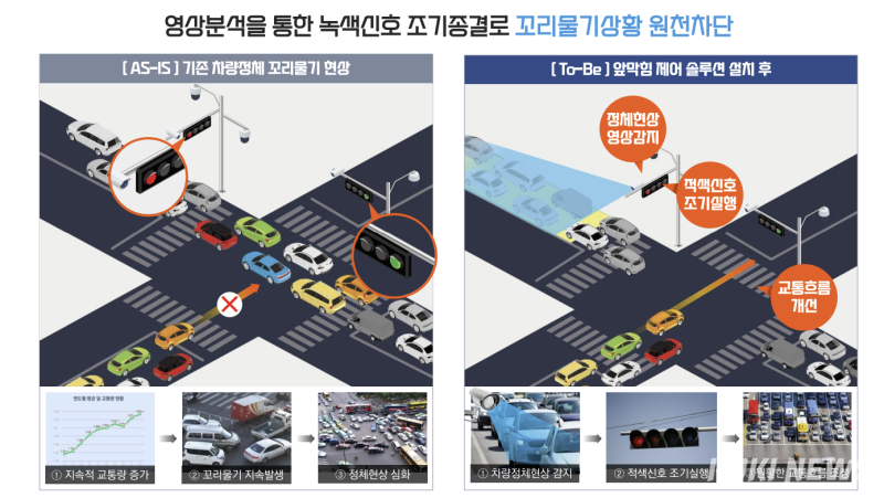 스마트 폴 설치로 범죄 예방, AI 이용 앞 막힘 제어로 교차로 혼잡 해소를 꾀했다.
