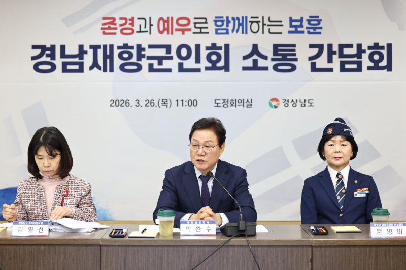 경상남도는 26일 도청 도정회의실에서 경남재향군인회 시군 회장단 등 50여 명이 참석한 가운데 ‘존경과 예우로 함께하는 소통 간담회’를 개최했다.