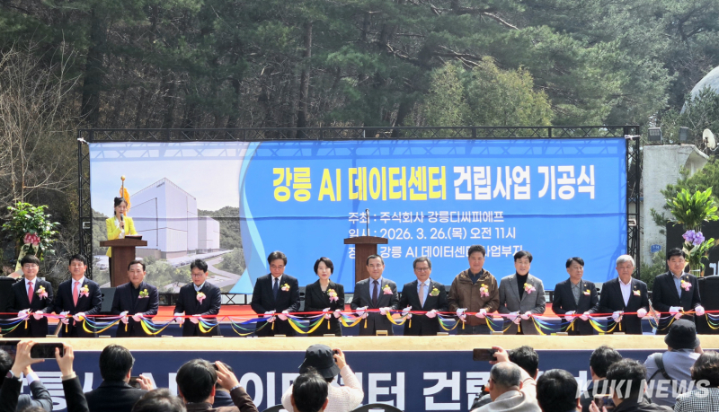 강릉시와 시행사 강릉디씨피이에프는 26일 오전 강동면 산두양지길 7-16에서 김진태 강원도지사와 김홍규 강릉시장, 최익순 강릉시의장, 김광래 강원도 경제부지사를 비롯해 이용래·김진용·김기영·윤희주·신보금 시의원, 권영만 강릉시체육회장, 이호근 강릉시주민자치협의회장, 김화묵 강릉문화원장, 최종봉 강릉시번영회장, 최순규 강릉시여성단체협의회장 등 기관단체장, 박소희 강릉디씨피이에프 대표 등 시행자와 설계사·건설사·금융기관·투자사 관계자, 시민 등 300여명이 참석한 가운데 ‘강릉 AI 데이터센터 건립사업’ 기공식을 갖고, 첫 삽을 뜨면서 공사의 본격적인 출발을 선언했다.
