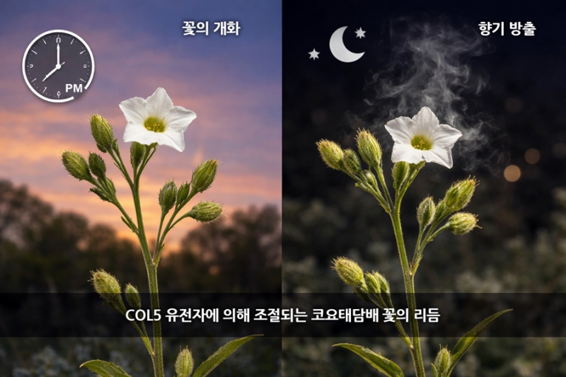 연구결과 특정 생체시계 유전자가 꽃이 열리는 시점과 향기 방출의 리듬을 함께 조절하는 핵심 역할을 하는 것으로 나타났다.