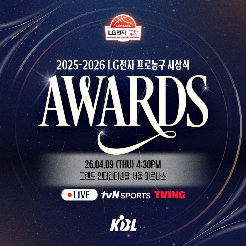 KBL은 4월9일 오후 4시30분 그랜드 인터컨티넨탈 서울 파르나스 그랜드 볼룸에서 ‘2025-2026 LG전자 프로농구 시상식’을 개최한다고 밝혔다.
