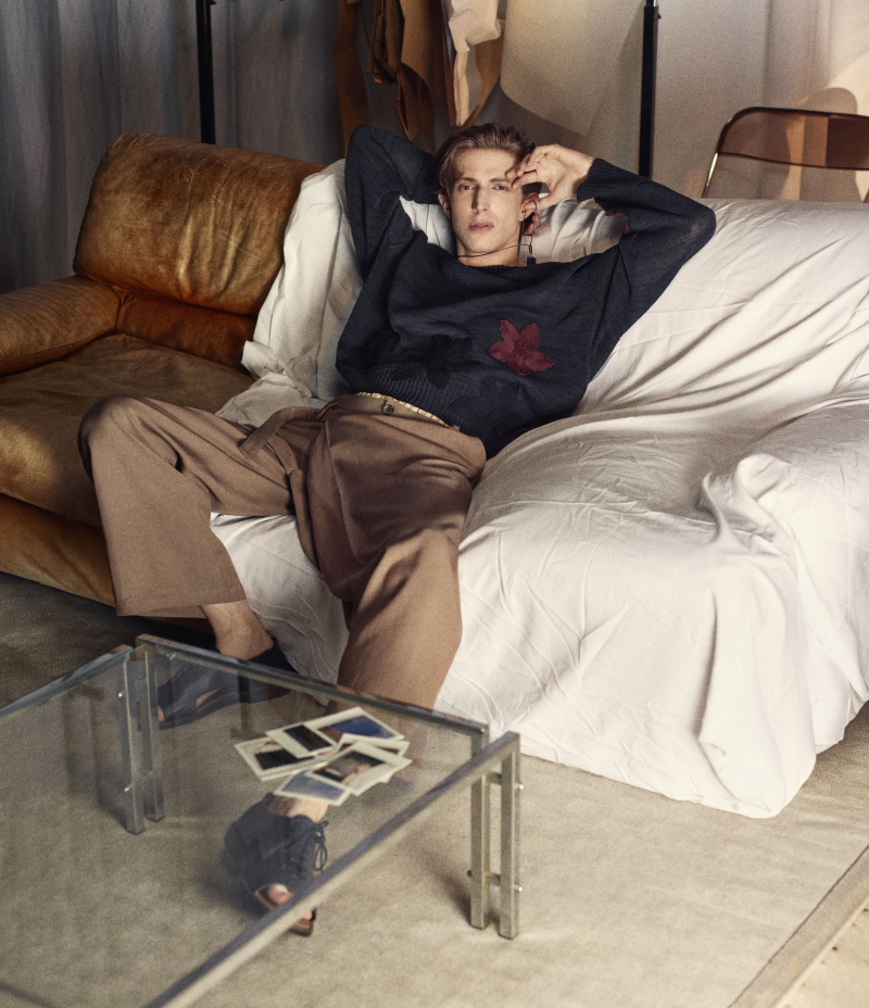 남성복은 보다 느슨한 방향으로 전개된다. 여러 겹의 주름이 잡힌 와이드 팬츠, 거즈 셔츠, 크로셰 니트 등은 공통적으로 여유 있는 실루엣을 기반으로 하며, 드로우스트링이나 부드러운 벨트 디테일을 적용한 슈트는 포멀과 캐주얼의 경계를 흐린다.