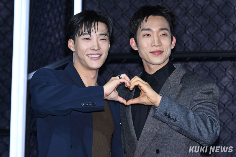 31일 열린 넷플릭스 시리즈 ‘사냥개들’ 시즌2 제작발표회에서 배우 우도환과 이상이가 포즈를 취하고 있다. 31일 서울 중구 앰배서더 서울 풀만 호텔에서 넷플릭스 시리즈 ‘사냥개들’ 시즌2 제작발표회가 진행됐다. 현장에는 김주환 감독과 배우 우도환, 이상이, 정치훈이 참석했다.