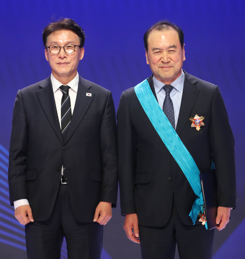 은탑산업훈장은 송현종 SK하이닉스 사장과 김재산 코리아에프티 대표이사가 수상했다. 송 사장은 독보적인 AI 반도체 기술력으로 글로벌 시장 1위를 굳건히 지키며 사상 최대 경영 실적을 이끌었다. 김 대표이사는 자동차 핵심 부품 개발로 글로벌 공급망 구축을 통해 수출 경쟁력을 높였다.