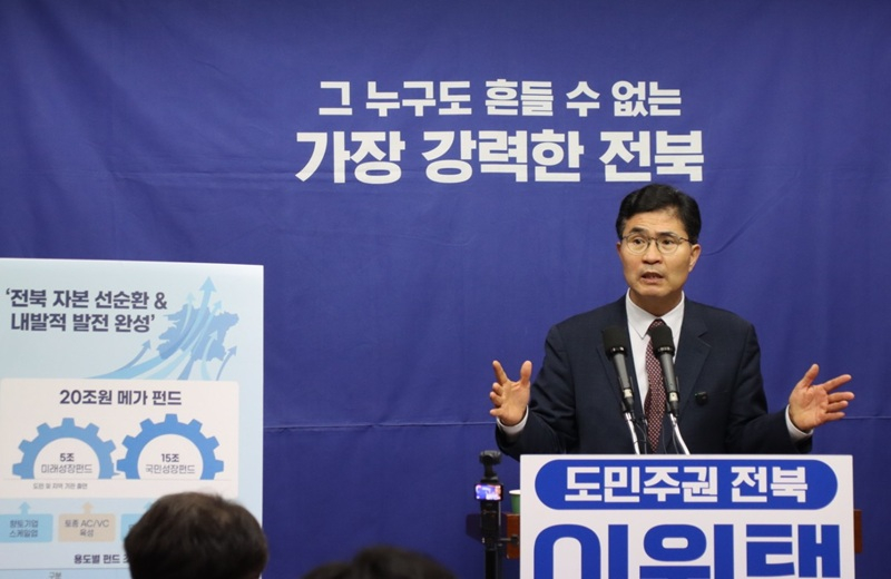 6·3지방선거에 더불어민주당 전북특별자치도지사 경선 후보로 나선 이원택 국회의원이 전북 경제 구조를 근본적으로 바꾸는 ‘20조 메가펀드 공약’을 발표했다.