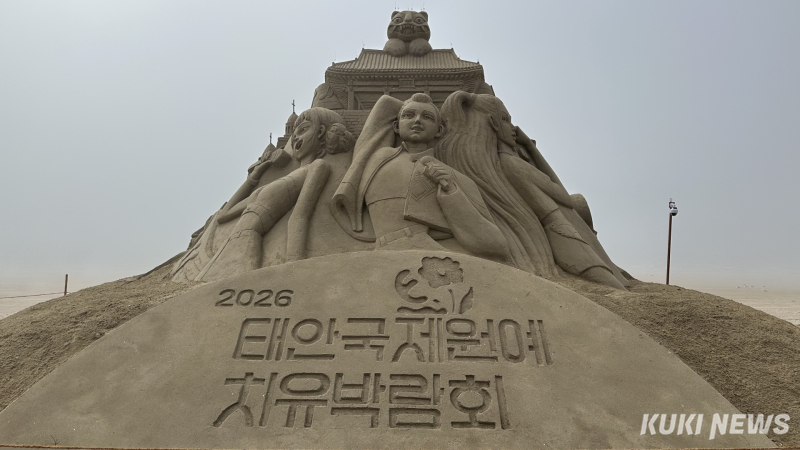 첫 번째 작품은 ‘태안에 온 K팝 데몬헌터스’로, 역동적인 K-콘텐츠 요소를 모래조각으로 형상화해 젊은 세대의 관심을 끌 수 있도록 했다. 공연 장면을 연상시키는 생동감 있는 표현과 디테일한 조각 기술이 특징이며, 한류 콘텐츠와 국제 박람회를 연결하는 상징적 작품으로 기획됐다.