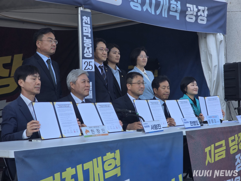 한 혁신당 관계자는 쿠키뉴스와 통화에서 “오늘 오전까지만 해도 피켓시위 일정이 확정되지 않았다”며 “어제부터 집중적으로 (정치개혁 관련) 논의했고 오늘 오전에도 논의해서 공동안이 나올 수 있었다”고 말했다.