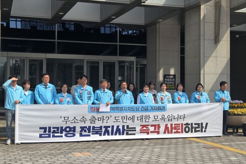 진보당 전북특별자치도당이 6·3지방선거를 앞두고 ‘현금 살포’ 의혹이 불거져 더불어민주당에서 제명이 결정된 김관영 도지사에 대해 도지사직 사퇴와 지방선거 불출마를 촉구하고 나섰다.