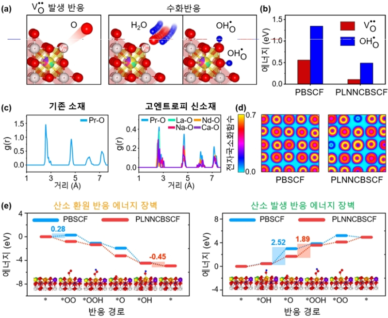 밀도범함수이론(DFT) 계산 결과 전극 내부에서 반응이 일어나는 빈자리인 산소결함을 만드는 데 필요한 에너지가 기존보다 60% 이상 낮아졌다.