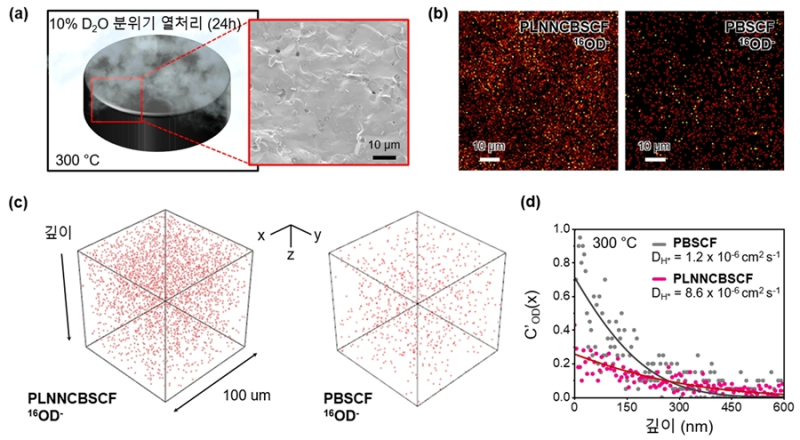 또 이차이온 질량분석법(TOF-SIMS)에서는 수소이온 이동속도가 기존보다 7배 이상 빨랐다.